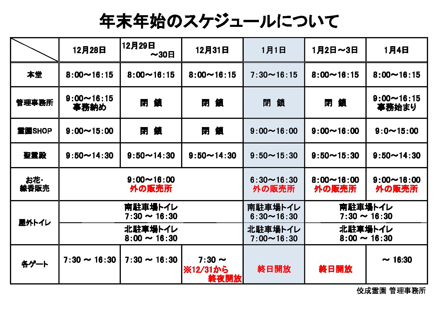 年末年始スケジュールのお知らせ